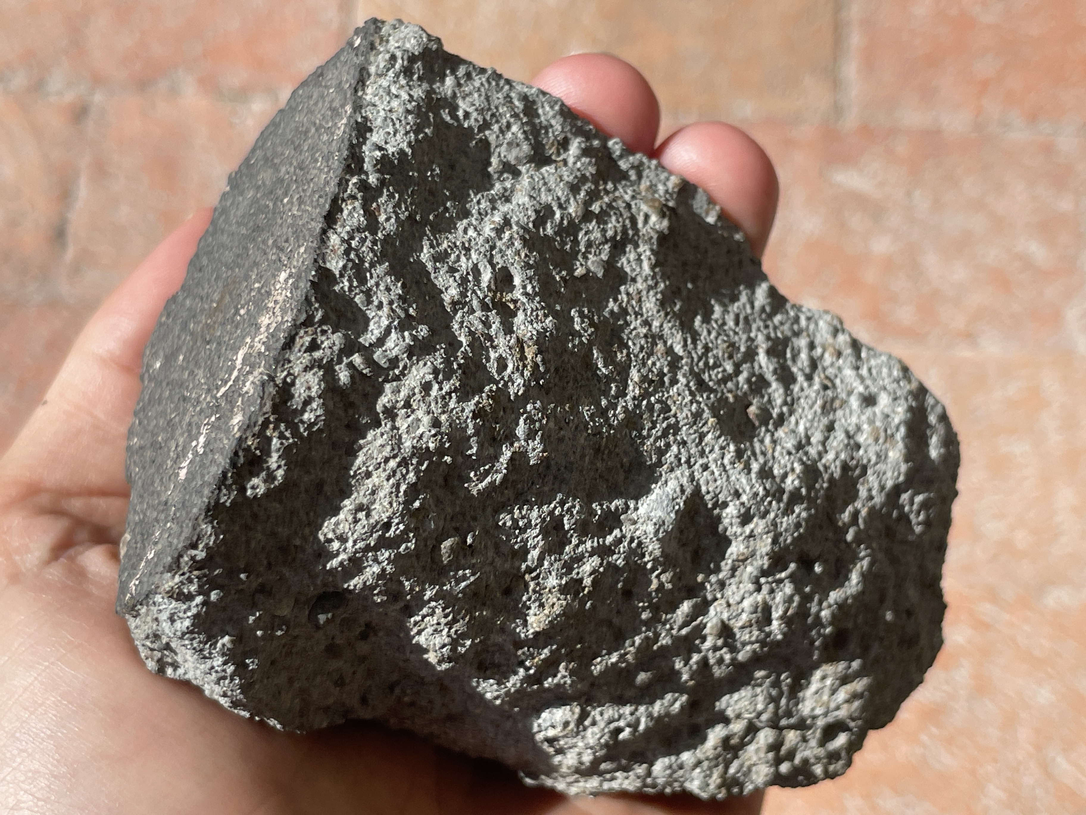 This ~690 gram crusted fragment was sold by Marlin Cilz to Jim Schwade in 1994.  It has an interesting troilite inclusion in one end that’s about 3 cm long.  Thanks to Blaine Reed for making it available.